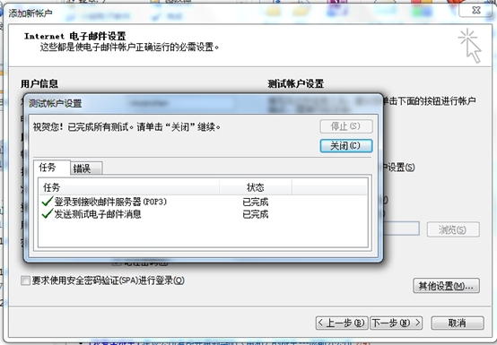點(diǎn)擊“下一步”,系統(tǒng)會自動進(jìn)行檢測,成功后顯示界面如下。然后點(diǎn)擊“關(guān)閉”即可完成設(shè)置。