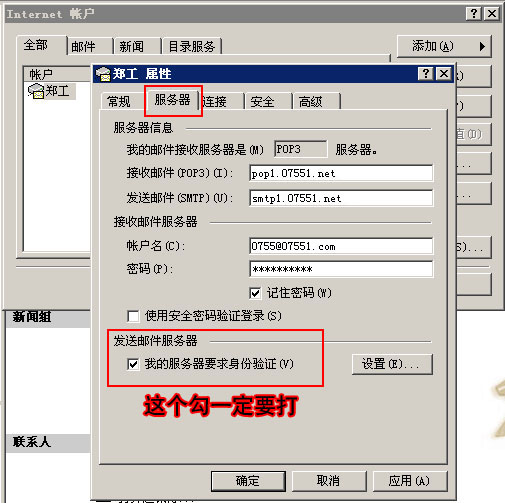 第九步:重點(diǎn):鏈接"服務(wù)器"然后打上"我的服務(wù)器要求身份驗證"勾