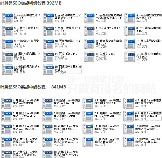 深一優化部seo教程包總共包括17套完整SEO視頻教程 分別是: